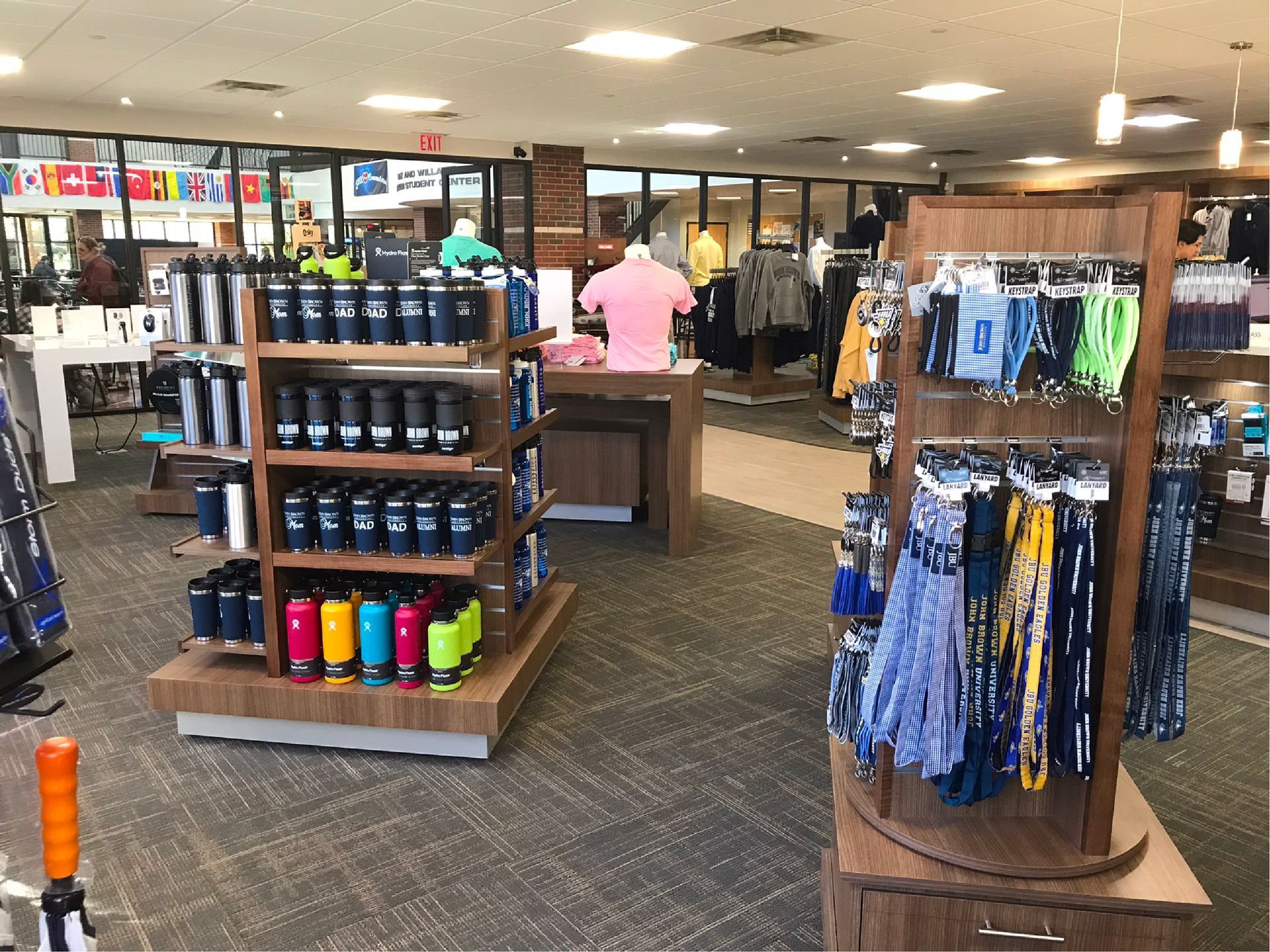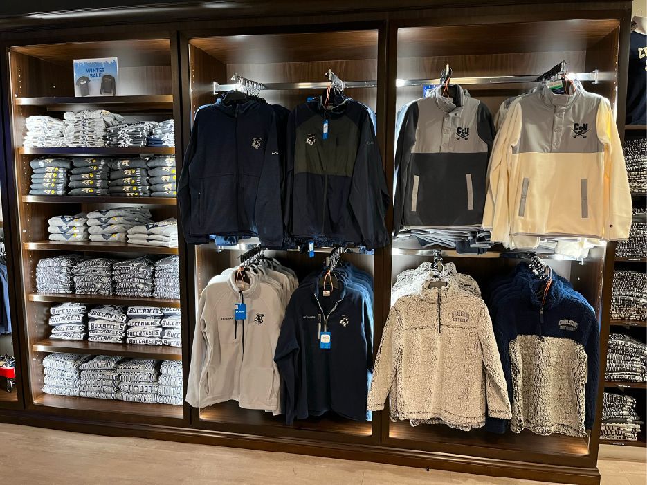 Our campus stores are filled with name-brand products such as Nike, Under Armour, Columbia, Cutter & Buck, Hydroflask, etc.